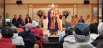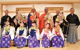 お釈迦様の誕生日を祝う「八王子花まつり」が4月3日、桑都テラス(中町)で行われた。主催は同実行委員会。雨の中、約50人が集い灌仏会法要を行った後、八王子市仏教会の小島正存名誉会長があいさつ。続いて、八王子芸妓衆の奉納舞や西川古柳座による車人形演舞が披露され、お祝いムードを盛り上げた。