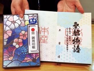御周印の押印には専用の御周印帳が必要。サイズは縦180mm、横120mm。蛇腹折で32ページあり、このうち28ページに押印可能。1ページにつき一つ御周印を押してもらえる。表紙は「扇」と「花」の2種類のデザインがある。価格は各2000円(税込)。押印手数料は1回300円(税込)。