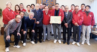 プレー後には贈呈式を開催。廣川会長から同センターの藤野彰理事長に寄付金の目録が手渡された。廣川会長は「この取り組みは陵東ライオンズの先輩たちが続けてきたもの。今期のスローガン『継続』のようにこれからも続けていきたい」と展望。藤野理事長からは寄付に対する感謝状が贈られた。