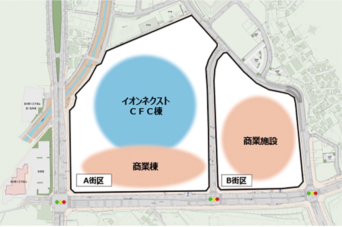 計画では八王子インターチェンジに近接する広大な敷地を活かした複合商業施設を新たな都市スタイルを発信する「八王子北部の拠点」と位置付け。AとBの二つのエリアで構成され、A街区にはイオンネクストの顧客フルフィルメントセンター(CFC)と商業機能、B街区には商業施設を設置する。具体的な店舗構成は今後発表される見込みだがシネマコンプレックスやライフスタイル提案型店舗、飲食店などが計画されている。