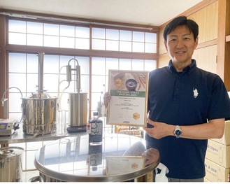 完成したのは、クラフトジンの「翠靄(すいあい)」とリキュール「マルベリー&ホップス28%」の2種類。ジンの方は別の品評会に出品していたこともあり、今回はリキュールのみを英国ロンドンで毎年実施されている大手酒類メディア主催の酒類品評会「The Asian Spirits Masters 2025」に出品した。アジアで製造・販売する企業がエントリーする中で、味や香りなどを審査。リキュール部門で金賞を獲得した。島村さんは「日本企業として唯一の受賞かつアジアナンバーワンの栄誉に驚いている」とよろこびを語った。