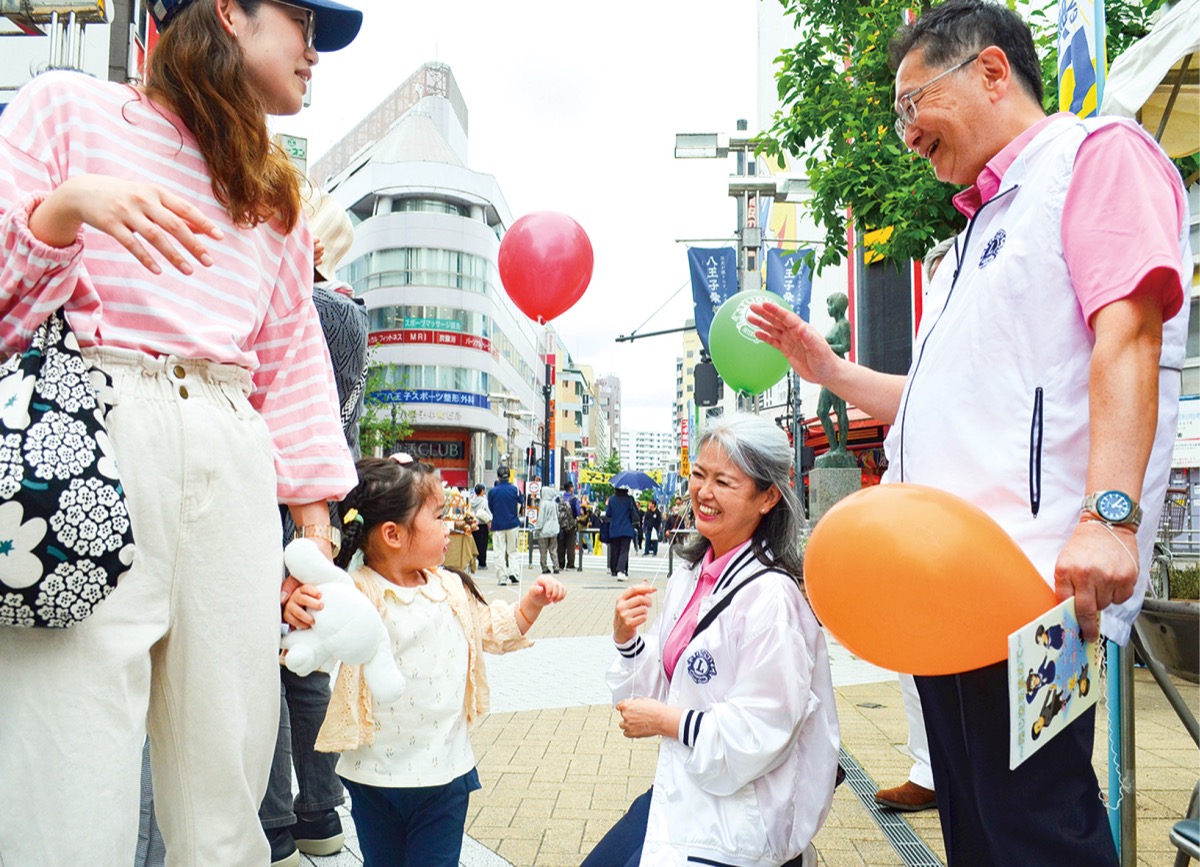 これは同クラブが「目の不自由な人に光を!」をテーマに、継続的に実施している活動。この日は12人の会員がLCのロゴが付いた風船を配りながら、道ゆく人に献眼登録を呼びかけた。谷合会長は「角膜は血液と同じで、人から頂かないと提供できない。年齢などに関わらず協力できるものなので、多くの人に知って頂けるようクラブとしても呼びかけ続けていく」と思いを語った。