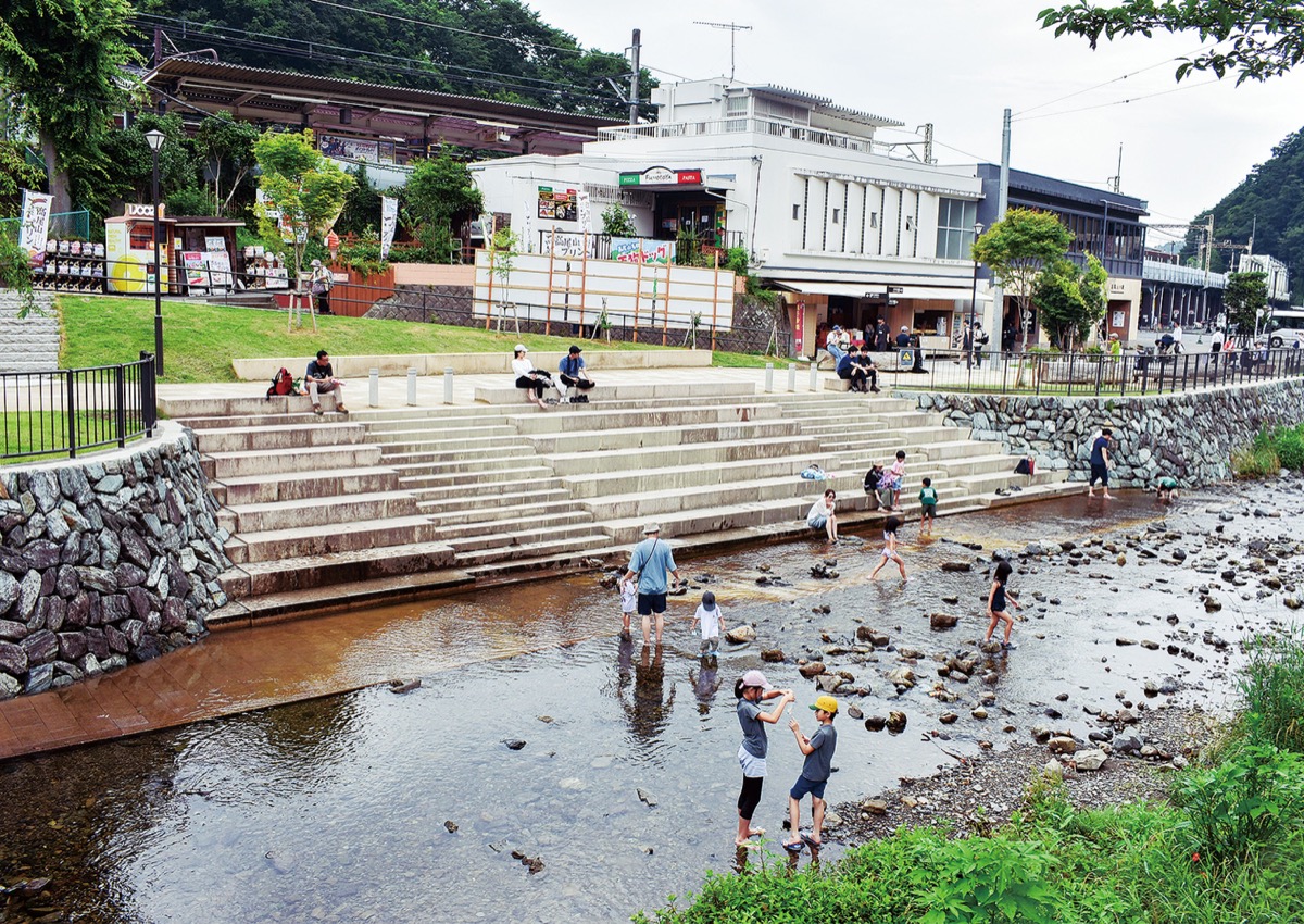 高尾山の玄関口、京王線高尾山口駅前にある「高尾山ふもと公園」が7月2日、第60回東京都公園協会賞で最優秀賞を受賞した。昨年4月に開園した同園は駅前を流れる案内川と一体的に整備されており、高尾山麓に魅力的な水辺空間を創出していることや、住民・行政・民間事業者など産官民の協働で公共空間整備が進められた好事例であると高く評価された。