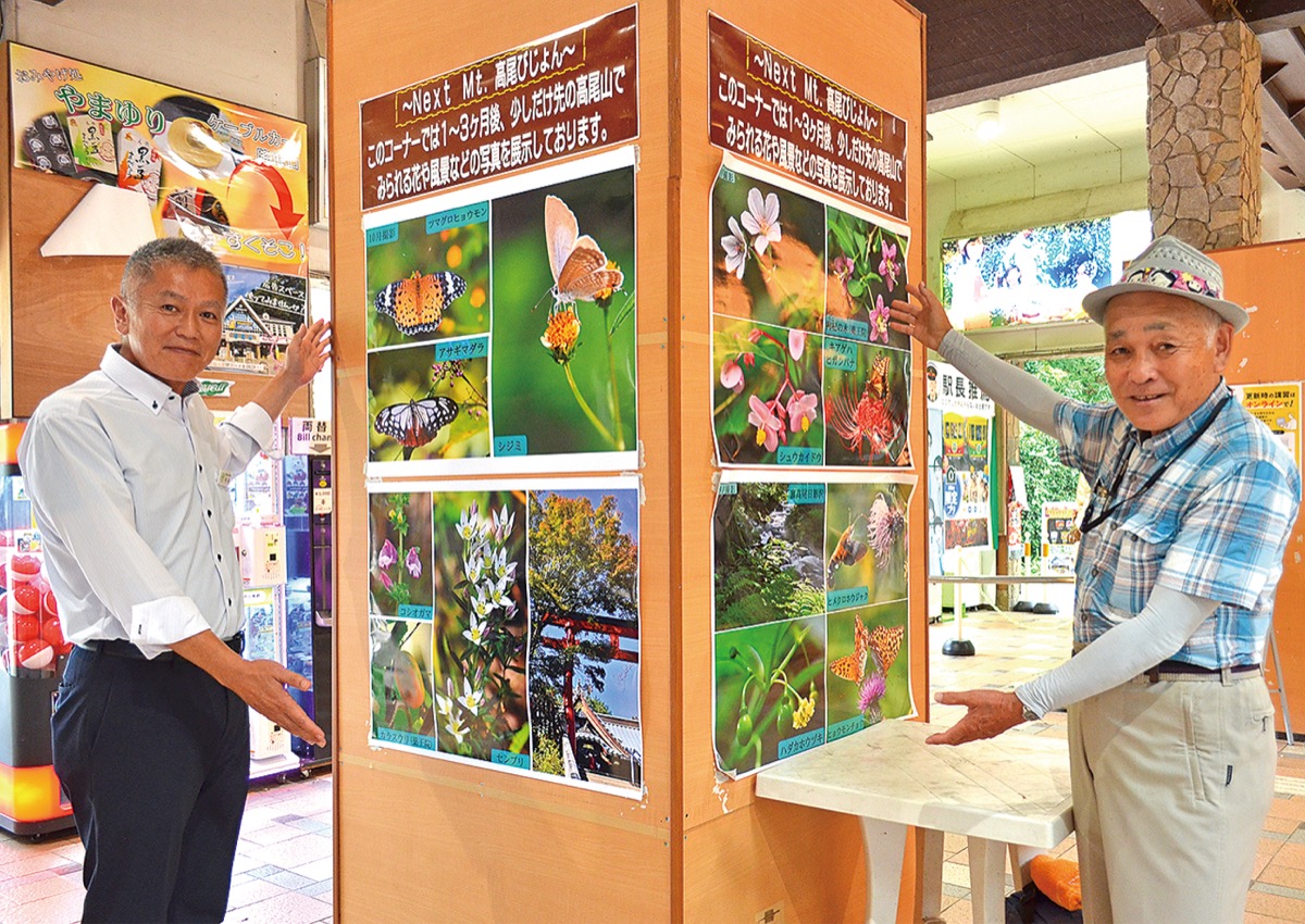 高尾山ケーブルカー清滝駅構内の柱の一つに、写真コーナーがあることをご存じだろうか。柱の4面のうち一つが高尾山のコースマップやパンフレットなどの配架スペースになっており、残り3面を使って高尾山でこの時期に見ることができる風景や植物、昆虫、野鳥などが写真で紹介されている。今年9月に展示5年目を迎えたこのコーナーに写真を提供しているのが、南大沢在住の樋口徹さん(79)だ。