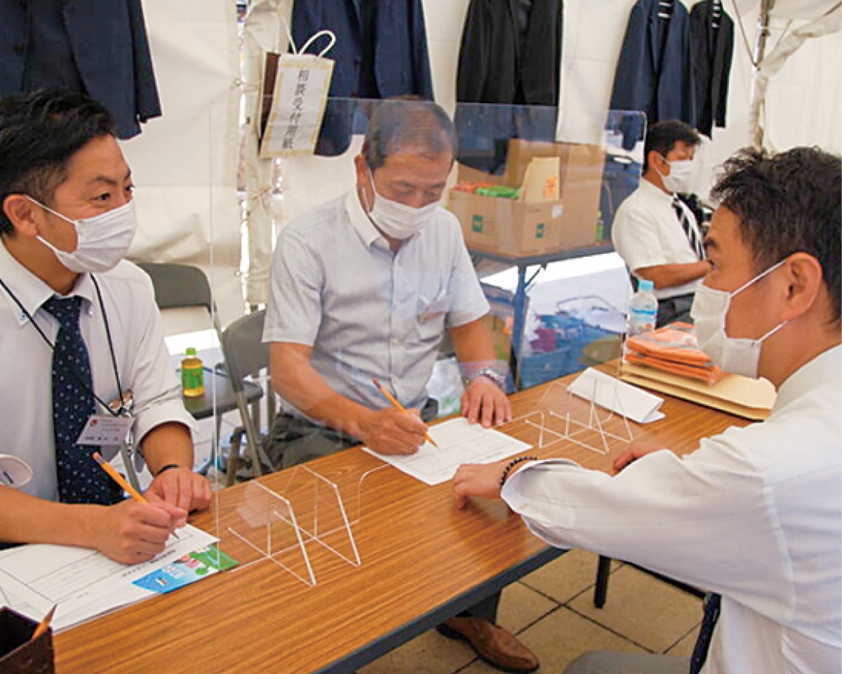 同支部が30年以上取り組む活動で、毎年50組ほどが相談に訪れる。当日は不動産に関する相談に弁護士、税理士、宅地建物取引士(協会会員)がやさしく、わかりやすく対応。「相続した土地を売りたい」「アパートの家主とトラブルに」「空家を処分したい」など、ここ数年は『売買・賃貸・相続』の悩みが多いそう。担当者は「不動産に関する悩み事、気軽に相談を」と呼びかける。