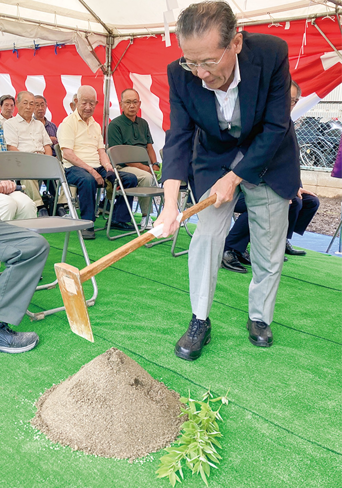 散田東町町会(伊藤裕司町会長/会員1130世帯)は9月20日、散田東町会館の建て替え工事を前に、同会館跡地で工事の無事を祈る安全祈願祭を催した。