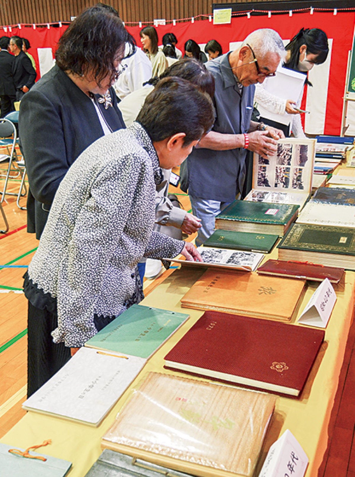出席者が同級生や恩師らと旧交を温めるなか始まった記念式典では、同校の歴史を振り返る動画の上映や出席者全員による校歌斉唱、来賓の祝辞、児童による音楽発表などが催された。また会場には歴代の卒業アルバムも展示され、卒業生たちが手に取って眺めて当時に思いを馳せていた。市川校長は式辞で歴代の校長や教職員、地域に感謝を述べ、「この学校だからできる学びがある。今日を新たな出発点として、今後も子どもたちの笑顔があふれる学校をつくっていけるよう力を尽くしていきたい」と誓った。