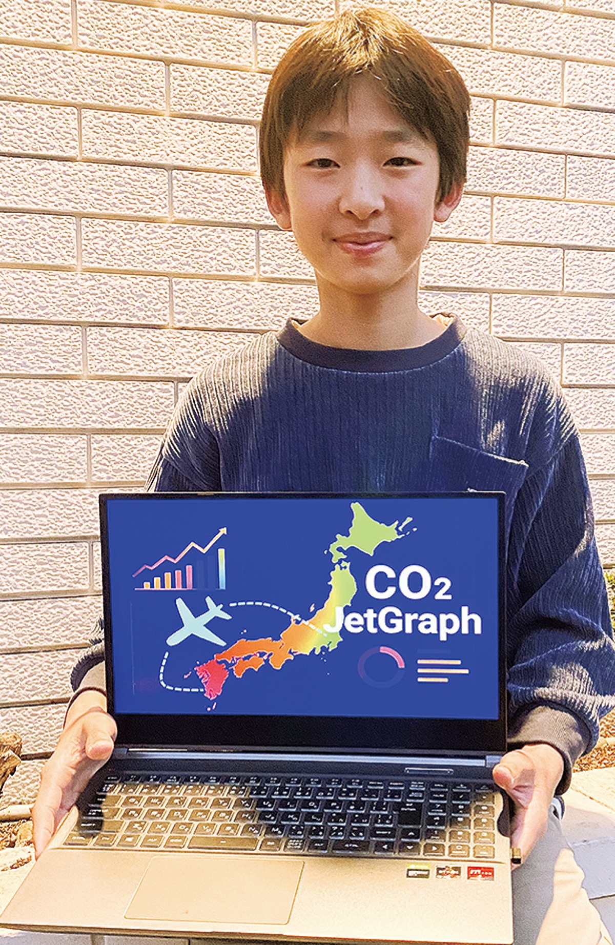 「頭で描いた設計図がしっかりあるときはすぐ手が動く。反対に、ぼんやりとしたイメージだとなかなか手が進まない」と話す山下さん。同大会では、日本上空を飛んでいる飛行機からどれくらい二酸化炭素が排出されているかがわかる「CO2JetGraph」を開発・発表した。北海道に住む祖父母に会いに、幼少期より飛行機に乗る機会が多かったことから着想を得たという。機窓からいくつもの飛行機が見えたことがあり、「同じ時間帯に一体何機空を飛んでいるんだろう」と疑問に思ったことが発端だった。飛行機が電車よりはるかに二酸化炭素を排出しているのを知ったこともアイデアとして加えるなど工夫し、国際ソフトウェア賞を受賞しグランプリにも輝いた。