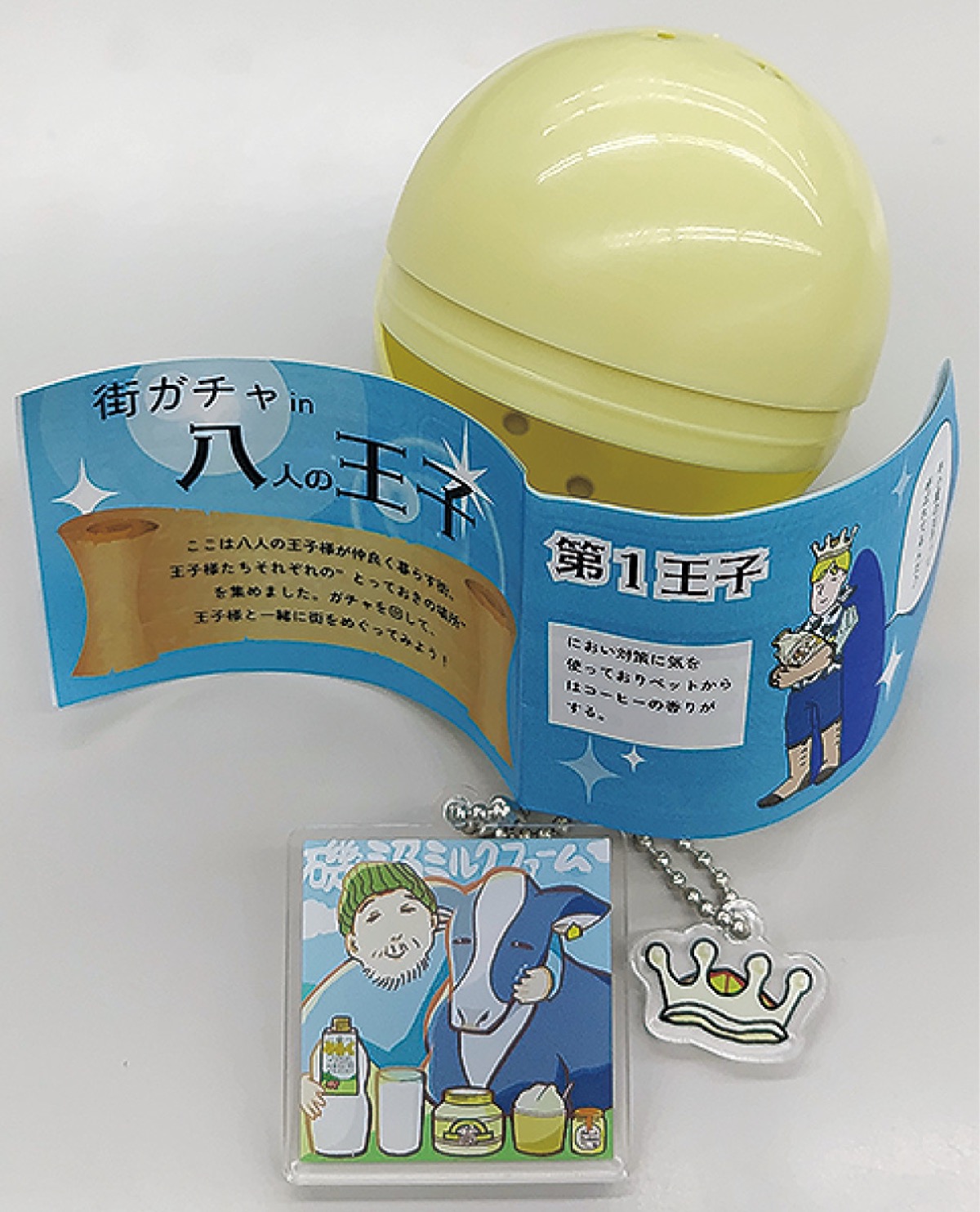 学生たちはJTBの担当者と半年にわたりテーマやデザインの検討を重ね、モチーフになる事業所への許可交渉にも同行。「八人の王子様」をテーマにしたストーリーを創作して、商品やポップに落とし込んだ。8人の王子には性格なども設定されており、ミニブックレットで紹介。「シークレット」も2種類用意した。JTBの小木田美緒さんは「ガチャを回す楽しさだけでなく、八王子の魅力を伝えてモチーフになった施設や事業所に実際に足を運びたくなることにこだわった」と語る。サークル前代表の新妻杏樹さん(4年)は「自分たちが作ったものが世に出る感動とやりがいを感じた。市外の人が八王子を巡るきっかけとなり、地元の人もうれしくなるような商品になれば」と期待、「ぜひ8人の中から『推し』を作って」と呼びかける。