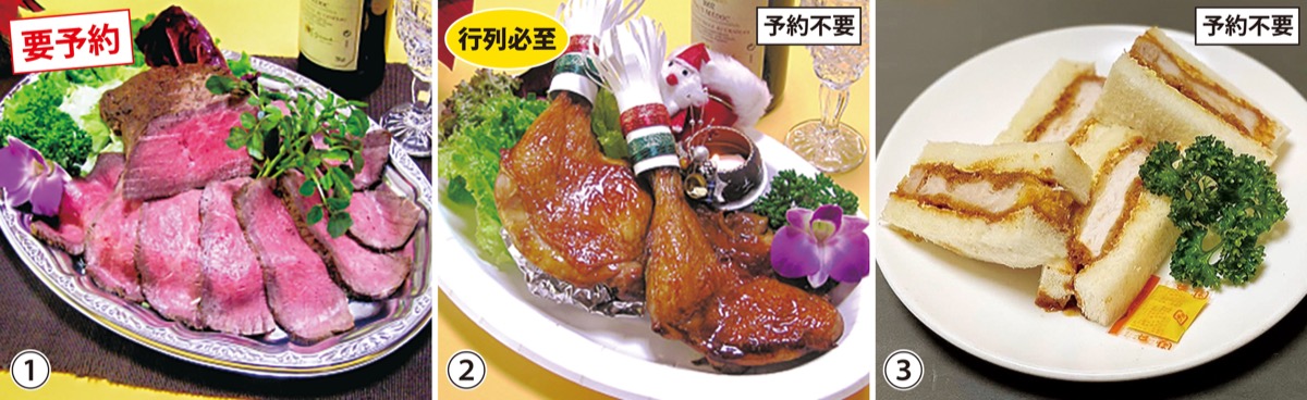 同店の自信作・【1】ローストビーフ(100グラム1500円)は、これぞクリスマスな「鉄板」の味。100グラムは大判スライス4枚ほどで、食べ応えは抜群、「富士屋に来るなら一度は食べてもらいたい一品」だ(要予約/12月20日(土)まで)。