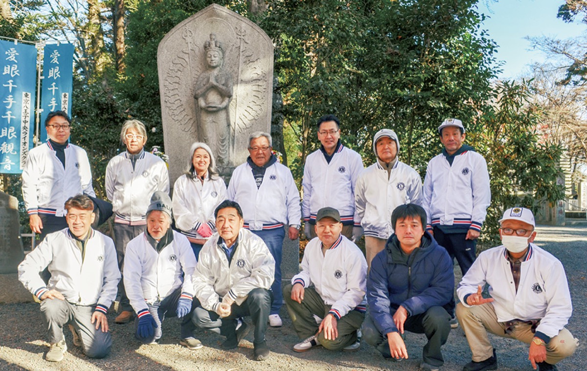清掃後には菩薩像に一人ひとり手を合わせ、高尾山薬王院を訪れて祈祷も受けた。林会長は「角膜の提供を受けた人は、その後の人生が変わるぐらい感謝をしている。まだまだ移植を希望する人は多く、今後もクラブとして、その周知活動を続けていきたい」と決意を述べた。