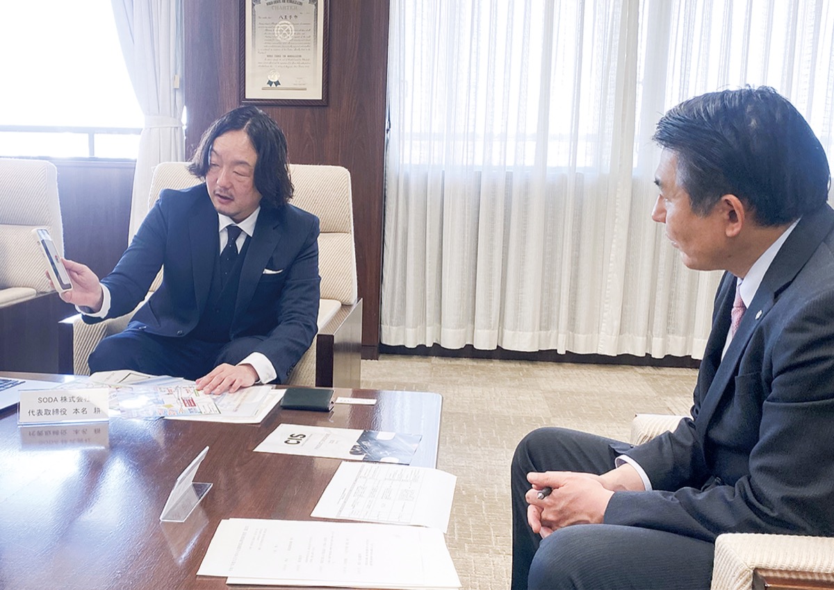 今年も塚本会長らが学生と2月12日に市役所を訪問し、市内小中学校の児童・生徒や高齢者施設の利用者らが折った約5000羽の折り鶴を初宿和夫市長に託した。