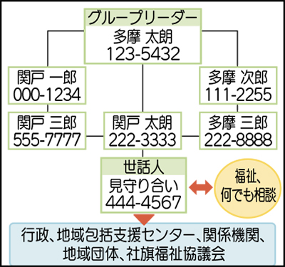 「向こう3軒両隣、つながりで安心を」を合言葉に、地域の見守り合い活動を推進している団体がある。それは「関戸2丁目・ご近所見守り合いの会」(小磯秀雄世話人代表)だ。”向こう3軒両隣”でひとつのグループを構成し、声掛け運動を中心とした高齢者等への見守り合いと支え合いを行おうと町内で呼びかけを行っている。「高齢化が進む市内で、モデル地区としてこの活動が他の地区にも広がっていけば」と小磯代表は話している。