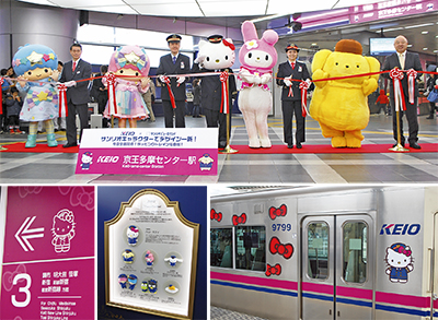 記念セレモニーでは、ハローキティらがテープカットを行った。サンリオの野村高章常務取締役は「昨年12月に25周年を迎えた。最近は海外からのお客様も増えている。今回初の試みとなるが、多摩市、京王電鉄とともに地域を盛り上げていきたい」と話し、京王電鉄の下川学相模原管区長は「キャラクターたちと力をわせ、地域や駅を利用するすべてのお客様に楽しく、気持ちよく利用してもらえるよう精一杯頑張っていきたい」と意欲を見せた。