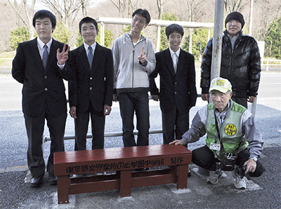 同隊の内多久雄副隊長は「生徒たちのお蔭で立派なものができた。子どもたちの地元に何かしたいという思いで作ってもらったこのベンチは、お金で買えないかけがえのないもので地域の財産。本当に嬉しい」と声を弾ませた。