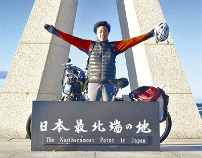 本田悠喜さん…22歳。福岡県出身、今春桜美林大学を卒業。多摩市民が主体となって地元で自然エネルギーの普及を目指す「一般社団法人多摩循環型エネルギー協会」の企画で、電動アシスト付自転車「ハピネス号」で日本一周の旅に挑戦中。日本各地の再生可能エネルギーの現場等を訪ね歩く。日々の旅程はFB「ハピネスに乗ってゆく」で更新中。もしくはHP「多摩エネ協」で。