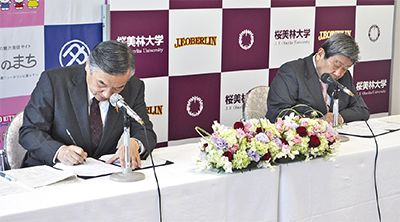 多摩市と学校法人桜美林学園(町田市、佐藤東洋士理事長)は11月25日、「旧多摩市立西落合中学校跡地施設の活用について」の確認書を締結し、多摩市が所有する同跡地と、同学園が所有する「多摩アカデミーヒルズ(落合2の31の1)の用地の一部」の交換が進められることになった。これにより、多摩市はアカデミーヒルズに隣接する場所で現在検討が進められている図書館本館の移転、整備をめざし、一方の桜美林学園は同跡地に小中一貫の義務教育学校施設の建設に向けて動き出すこととなった。