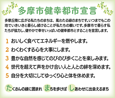 ――健幸都市の実現へ向けて、今後の多摩市の具体的な取り組みについて教えてください。