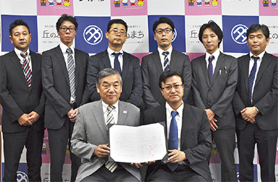 多摩市は7月27日、市内の新聞販売9店と折込1店で構成される「多摩市新聞販売同業者組合」(稲村久男組合長)と「多摩市地域見守り活動」の協定を締結した=写真。