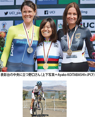 今大会に野口さんは、タイムトライアル(15・5Km)とロードレース(48・6Km)の2部門に出場し、タイムトライアルで優勝、ロードレースで3位と、2部門でメダルを獲得する快挙を成し遂げた。