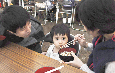 この日も、実行委員会が小麦粉で打った麺に、山梨県北杜市や甲州市で採ってきた「じごぼう」「笹子」といったきのこを使って約600食用意。台風の影響による大雨で、地元の小中学生によるパフォーマンスなどが中止になる中、駆けつけた来場者たちは、郷土の味に舌鼓を打っていた。