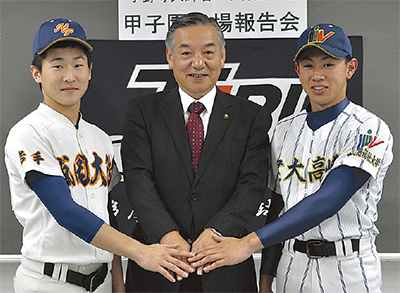 この日久しぶりに帰郷した2人は、阿部裕行多摩市長に甲子園出場を報告。阿部市長は高校を選んだ理由や高崎や盛岡での生活について質問し「多摩から他県に越境し活躍した2人に勇気をもらった。次のステージでもぜひ頑張ってほしい」とエールを送った。