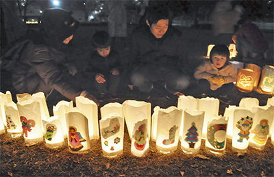 永山地域・地域活性化実行委員会が主催する「夢あかり」が12月9日、永山団地名店街と永山南公園で開催され、地域住民がその幻想的な灯りを楽しんだ。