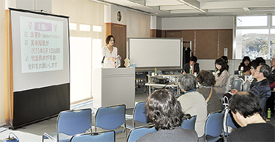 もうひとつは「つながる食」をテーマにした「多摩地域企業等情報交換の集い」を開催。市内で”子ども食堂”や”誰でも食堂”などの活動を行う団体のネットワーク「たま食ねっと。」から「NPO法人シェアマインド」の松本靖子氏、「ピンクララタマ」の玉内智美氏がフードロスやフードバンクについての活動、聖蹟桜ヶ丘駅近くで開いている子ども食堂の様子をそれぞれ紹介。また(株)海宝「カーブス」の山下美和氏、(株)悠輝「ドキわくランド聖蹟桜ヶ丘店」の浅田哲志氏が、店舗で取り組むフードドライブや、子ども食堂のサポートについて紹介した。
