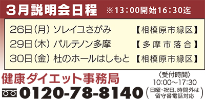 それを知り、身に着け、実践するのが今回のダイエット教室。個別指導も含めて4カ月間実践するため、多くの人を指導できないので、説明会も各会場5〜6名迄の少人数制で開催している。