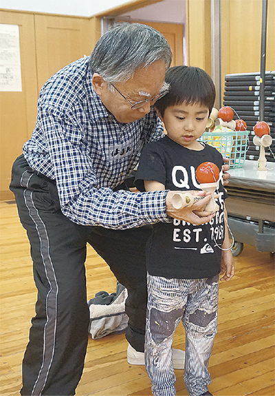 第1部では、けん玉やコマ、皿回し、折り紙、あやとりなどの昔遊びの他、今年は新聞紙でかばん作りにも挑戦。2部では、手遊びや紙芝居、読み聞かせを行い、集まった子どもたちは地域の大人たちから伝授される昔遊びに夢中になって楽しんでいた。