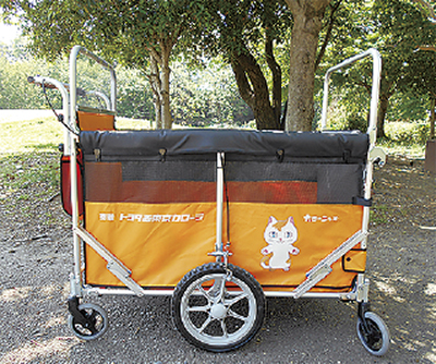昨年創業50周年を迎え、「将来の地域を担う子どもたちの支援」をコンセプトに掲げ、昨年も多摩市に保育園などで園児たちが散歩する時に利用する「お散歩カー」2台を寄贈。今年も、同社の企業カラーであるオレンジ色の装飾に、オリジナルのイメージキャラクター「カローニャ」が描かれているものを、多摩市の仲介で「やまと保育園」(和田・社会福祉法人大和会)、バオバブ保育園(一ノ宮・社会福祉法人バオバブ保育の会)に寄贈した。