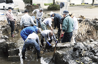 かいぼりは同組合の約20人が参加して、2回に分けて行われた。作業は、池で過剰繁茂していた「蒲」を切り出し、水底にたまった泥を除去。池に生息していたクロメダカやゲンゴロウ、ミズカマキリ、準絶滅危惧種の「トウキョウダルマガエル」のオタマジャクシを保護した。
