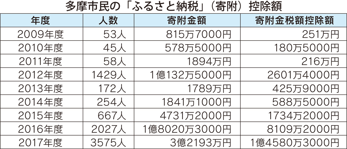 2008年から始まった「ふるさと納税」。多摩市でも15年11月から、市への訪問につながる様々な返礼品を用意している。大幅な歳入増加につながる自治体がある一方で、その返礼品が”競争化”され、財政運営に影響を受けている自治体もある。多摩市も影響を受けている自治体の一つで、今年度の寄附金控除額が2億円を超える見込みで減収が予想されるという。