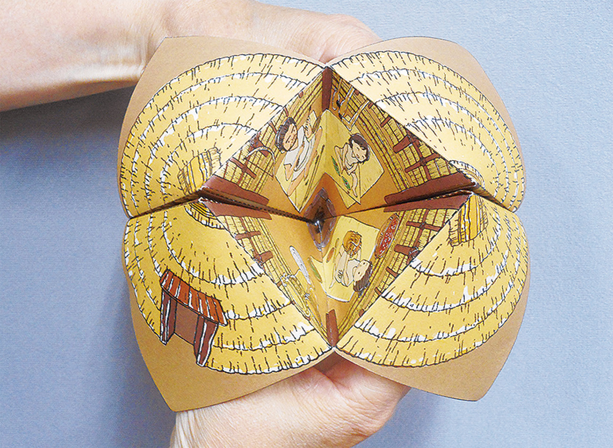 「縄文パクパク」とは、縄文時代のくらしをのぞきながらつくる折り紙のパクパクのこと。当日は、土器のもようをうつしとる「縄文アート」も行う。