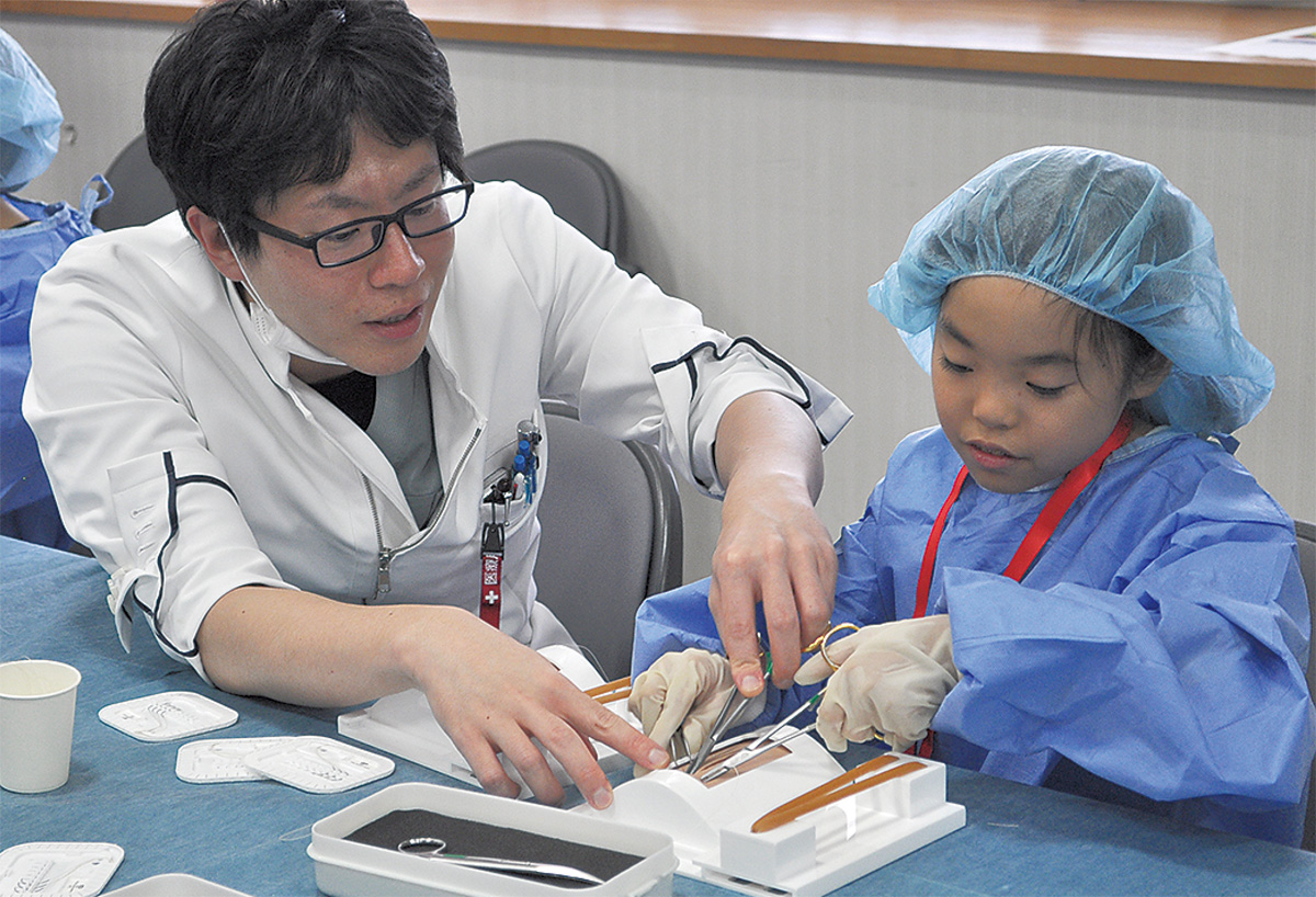 参加した児童たちは「初めての体験で難しかった。将来は医師になりたい」「医師の仕事は毎回こんなことをやっていて大変だなと思ったし器用だなと思った」と感想を話した。同院の消化器外科・乳腺外科・一般外科の牧野浩司部長は「毎年実施してすぐに定員が埋まってしまう人気のあるイベントになった。将来、この中から一人でも医師としてここに帰ってきてもらえたら。できる限り継続していきたい」と話していた。