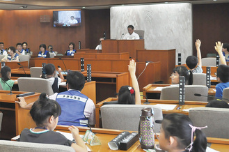 児童が議会を「模擬体験」