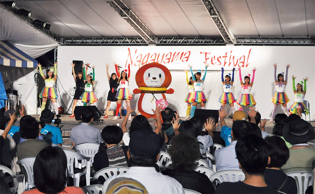今年は、多摩市のご当地アイドル「des ailes89(ディゼル)」や、グリナード永山のダンスヴォーカルショータイムレギュラーユニットの「三姿舞」、和太鼓アイドルユニット「東京おとめ太鼓withSAYA」の3組のグループが両日にわたってステージに出演。ディゼルと三姿舞は、昨年20周年を記念して制作された「Nagayama Song」を地域活性化キャラクターの「永どん」と一緒に披露するなど、会場に花を添えた。