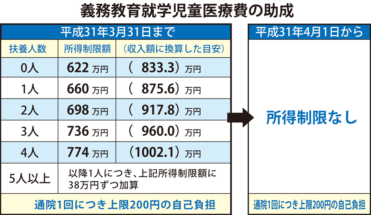 来年4月1日からは、その所得制限が撤廃され、すべての子どもが助成対象となる。ただし、国民健康保険または各種健康保険に加入し、生活保護、里親制度などを受けておらず、ひとり親医療費助成、障害者医療助成を受けていない子どもに限られる。なお、通院1回につき上限200円の自己負担については、引き続き実施するという。