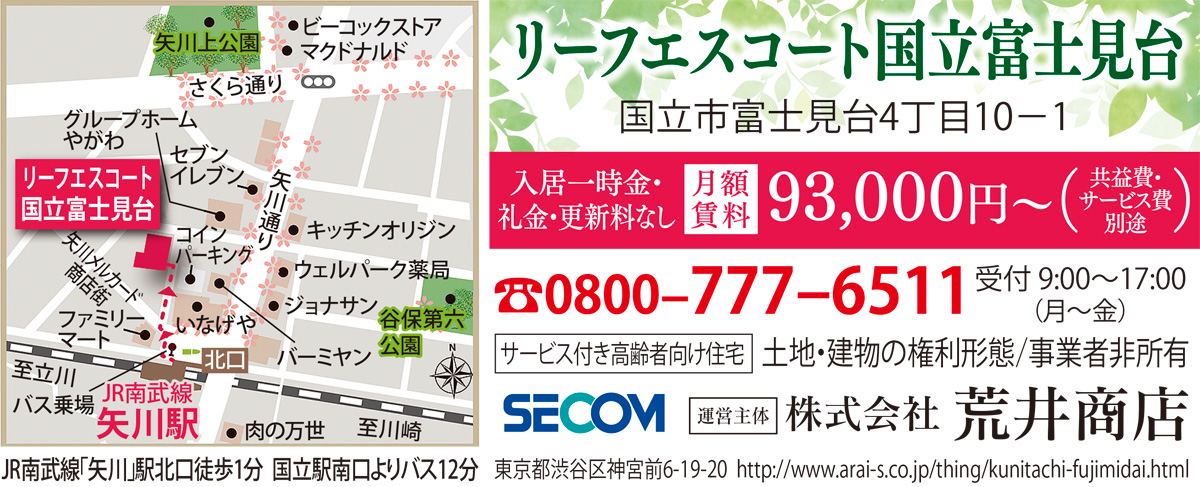 元気なうちから安心の暮らしを手にしたい。そんな願いに応えるサービス付き高齢者向け住宅が「リーフエスコート国立富士見台」。