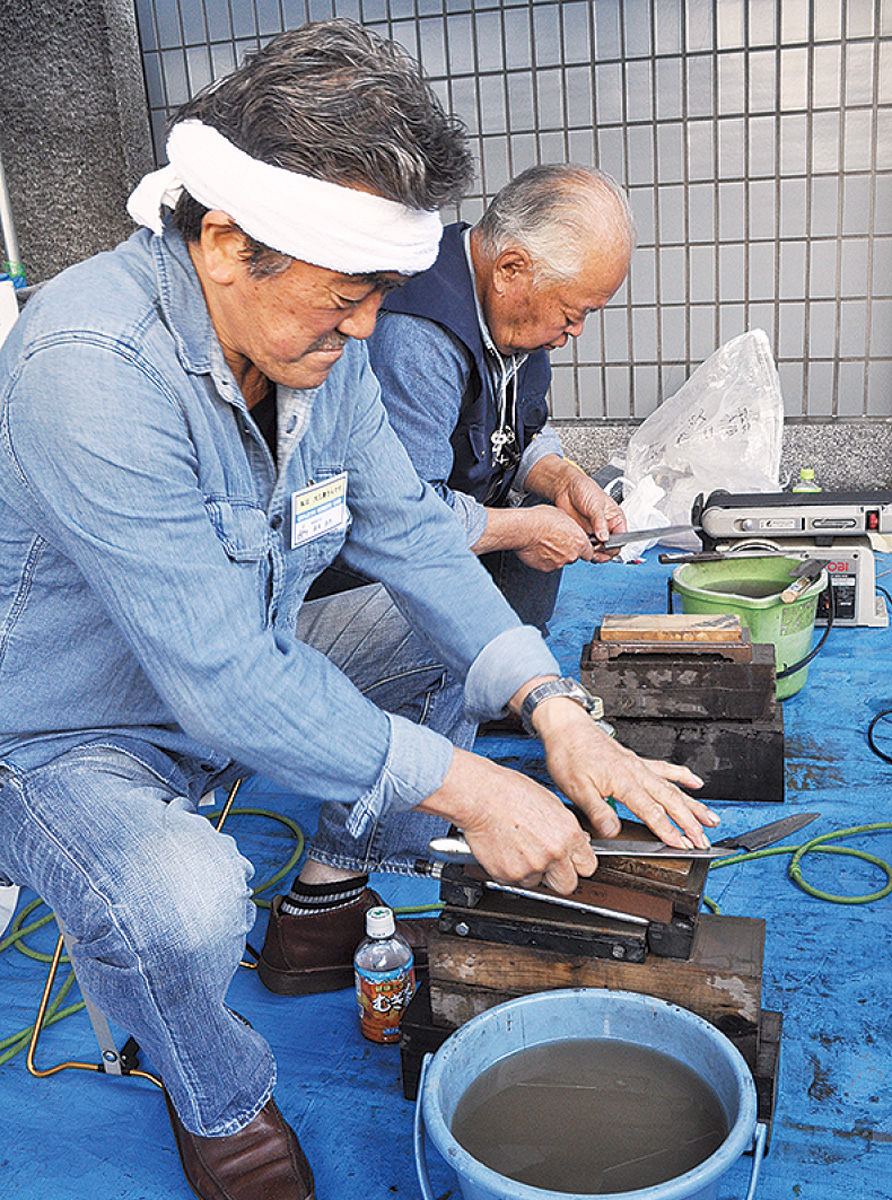 当日は、同組合の職人が会場にミニチュアの木造住宅を建築。その住宅のミニ上棟式を行い、上階から子どもたちに向けてお菓子まきが行われた。包丁研ぎ・まな板削り、焼いたさんまなども振舞われ、大盛況だった。
