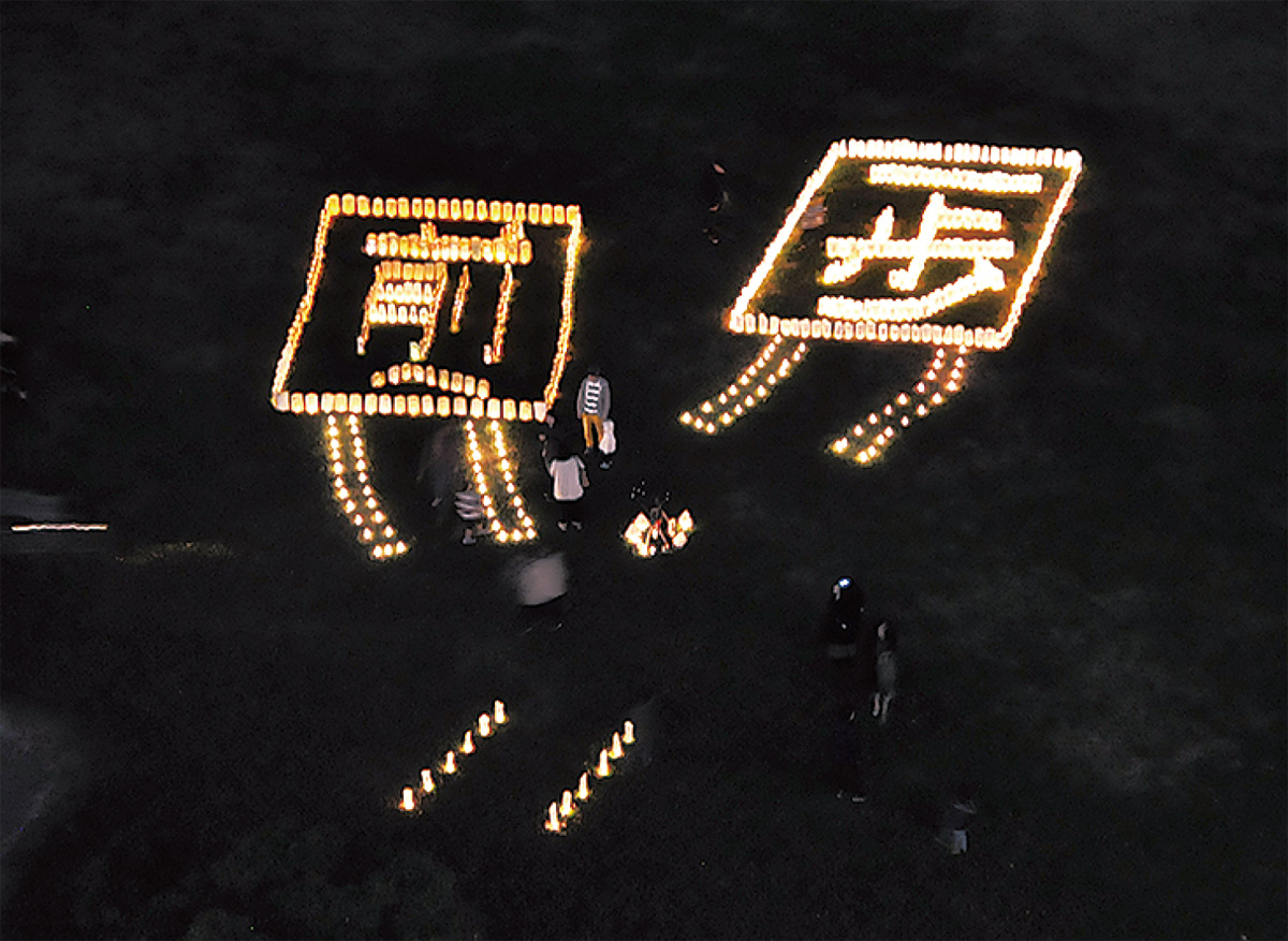 同実行委員会は「今年は、子どもたちと地域住民でつくった行灯のコラボで文字を作った。今年も多くの方に足を運んでもらえてよかった。これからも地域の活性化につながるよう継続していきたい」と話していた。