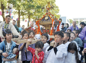 当日は、大人神輿、子ども神輿の渡御、お囃子や太鼓の演奏が行われる。神輿は、年齢・性別関係なく、誰でも担ぐことができる。服装も自由で、参加費は無料。