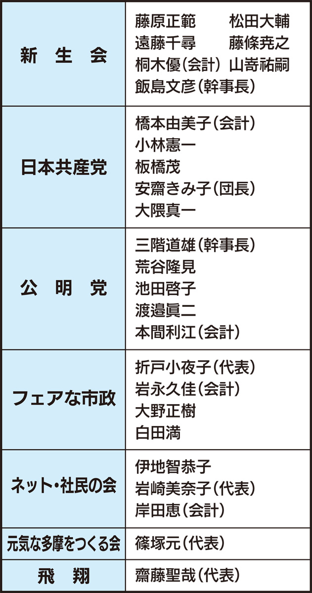 なお、このほど決まった各会派構成は表の通り(敬称略)。