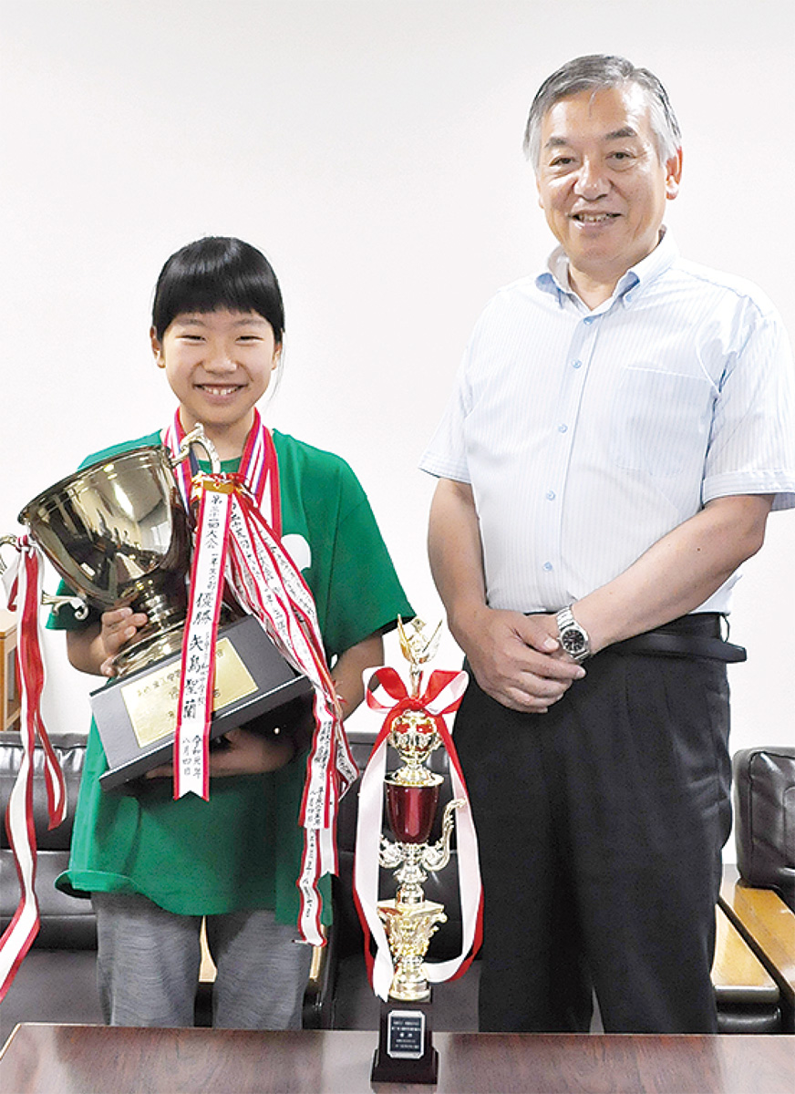 8月20日には、阿部裕行多摩市長のもとを訪れ、全国大会優勝を報告。阿部市長は「小学生で大活躍され、中学生でも個人、団体で優勝されて、多摩の誇り。目標のかるたクイーンを目指してこれからも頑張ってほしい」とエールを送った。