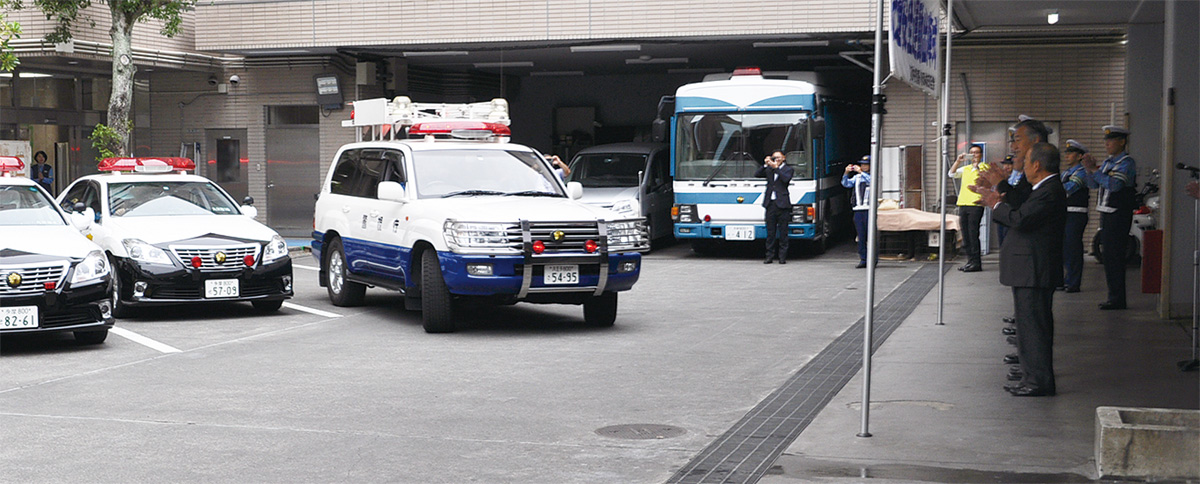 9月21日から30日まで、全国で一斉に行われた「秋の全国交通安全運動」。多摩市と稲城市を管轄とする多摩中央警察署は9月21日、同署で出陣式を行い、岩井文丈署長や、阿部裕行多摩市長をはじめとした来賓、警視庁マスコット「ピーポくん」に見送られる中、警察車両が管内のパトロールへと一斉に出発した。