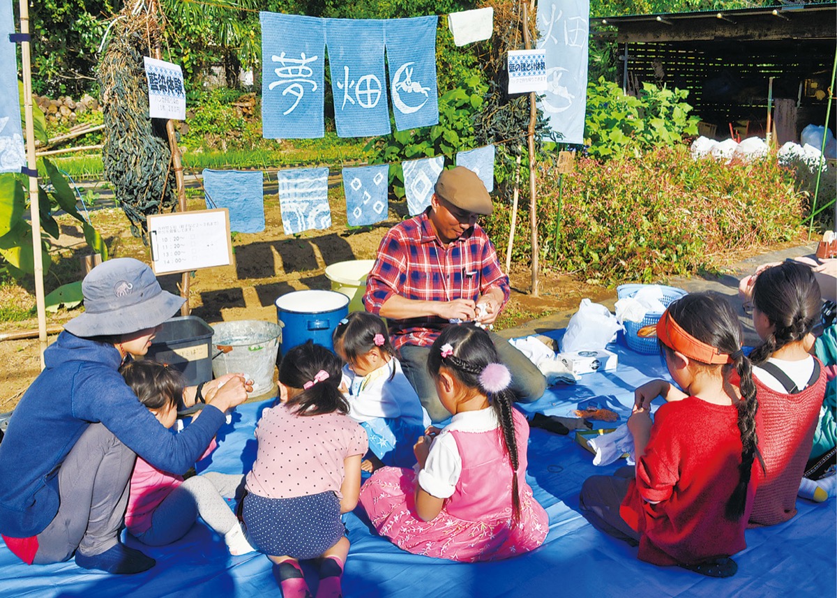 当日は、落花生掘り体験や採れたて野菜の販売、輪投げ・射的などのゲーム、藍染めの体験会などが企画され、子どもから大人まで多くの人が楽しんだ。また野菜たっぷりの豚汁や窯焼きのピザなども振舞われ、来場者は舌鼓を打っていた。