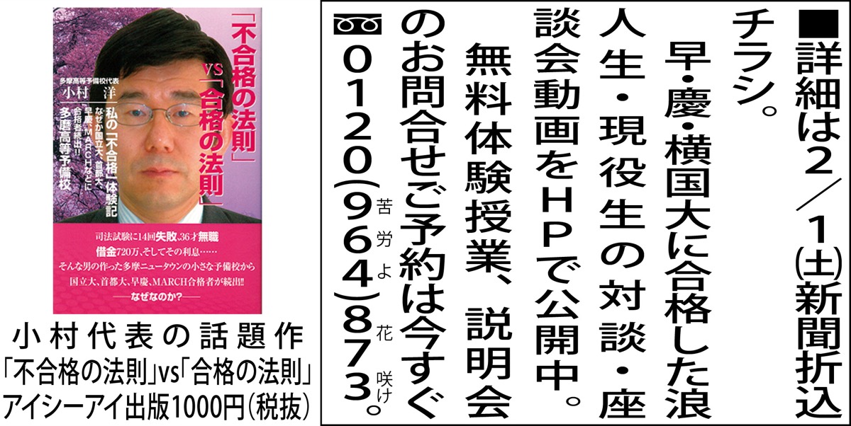 浪人生・現役生が国立大、首都大、早慶、MARCH、獣・医・薬大他に続々と合格!そんな快挙が続く多摩センターの「多磨ヨビ」。
