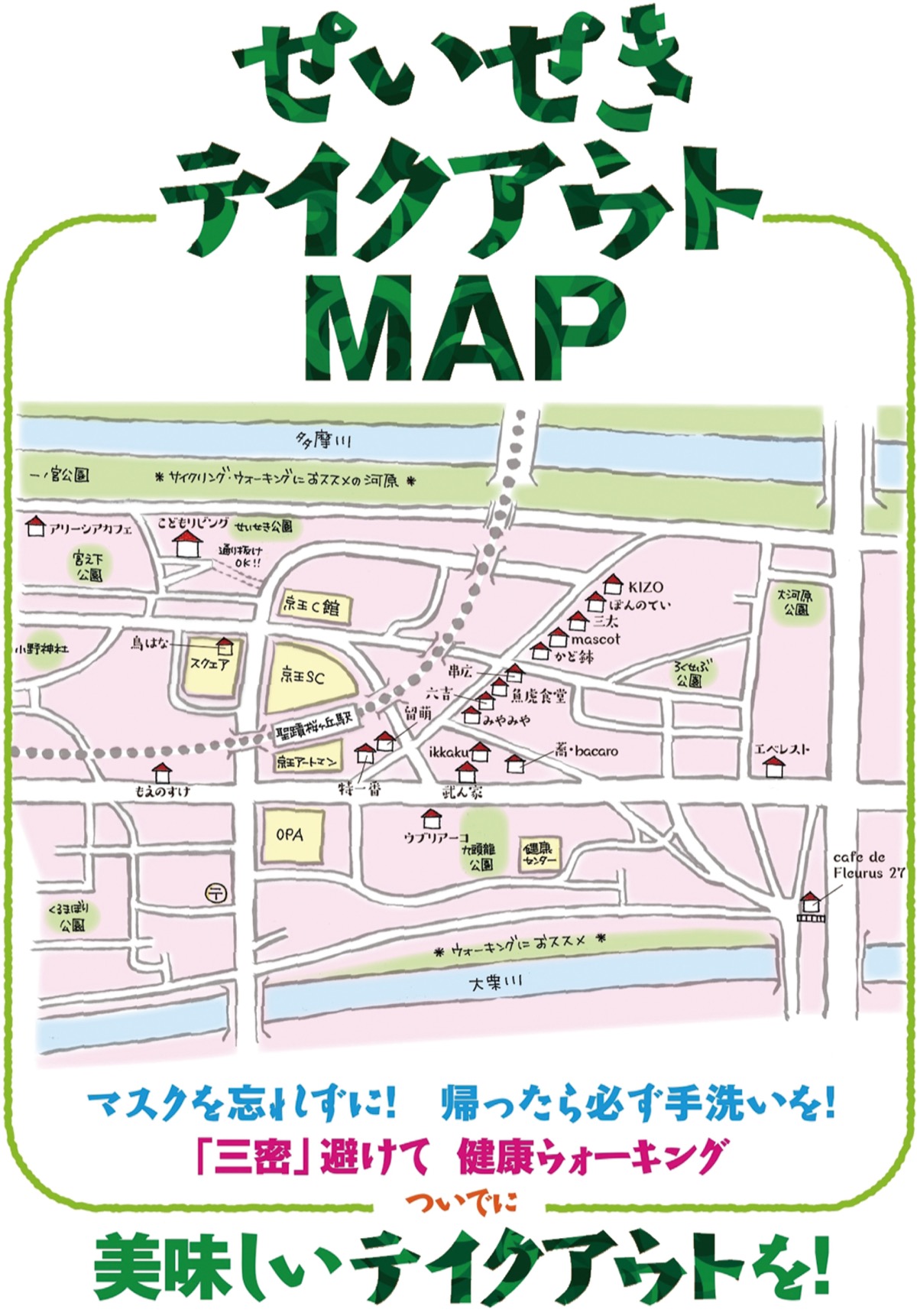 「やってます。テイクアウト のり切ってみせる!」。そんなキャッチコピーでテイクアウトを宣伝するポスターが現在、聖蹟桜ヶ丘駅周辺の店舗などに貼られている。このポスターとMAPが一緒になったチラシの配布も同駅周辺で始まった。新型コロナウイルスの影響で苦境に立たされている飲食店を応援しようと、地元有志の手によって製作されたこのポスターとチラシ。商店や企業、公共施設が掲示に協力し、テイクアウトを利用する人も増えるなど地域で支援の輪が広がっている。