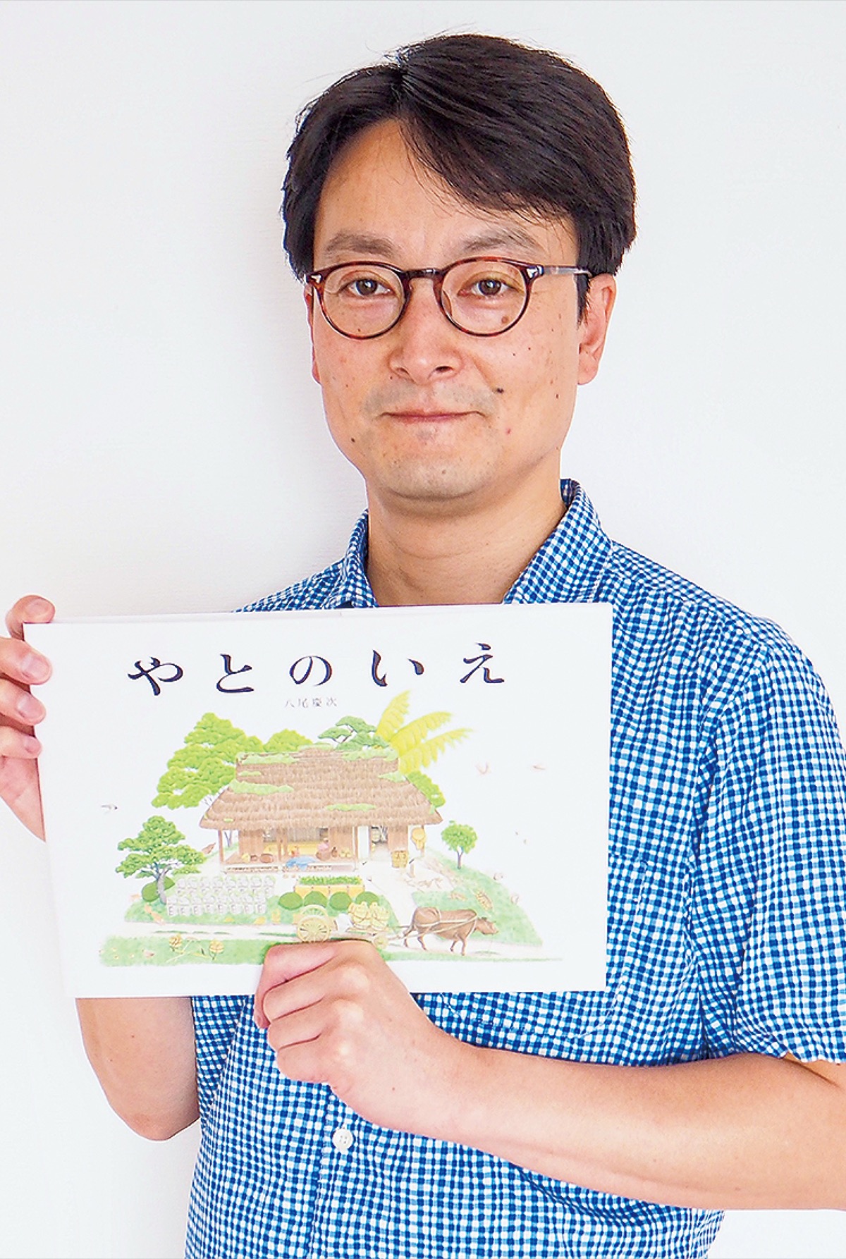 多摩丘陵の農村が多摩ニュータウンに開発されるまでの軌跡をモデルに描いた絵本『やとのいえ』が7月20日、(株)偕成社(新宿区)から出版された。著者はボローニャ国際絵本原画展で入選した経歴を持つ八尾(やつお)慶次氏(47)。同作品は、道端に佇む16の羅漢さんが一軒の茅葺き農家の営みを150年にわたって定点観測で見ていくという物語。監修を務めた(公財)多摩市文化振興財団の仙仁 径(せんに けい)氏は「ニュータウン開発の前後が定点観測の形で描かれた本は今回が初めてではないか」と話す。