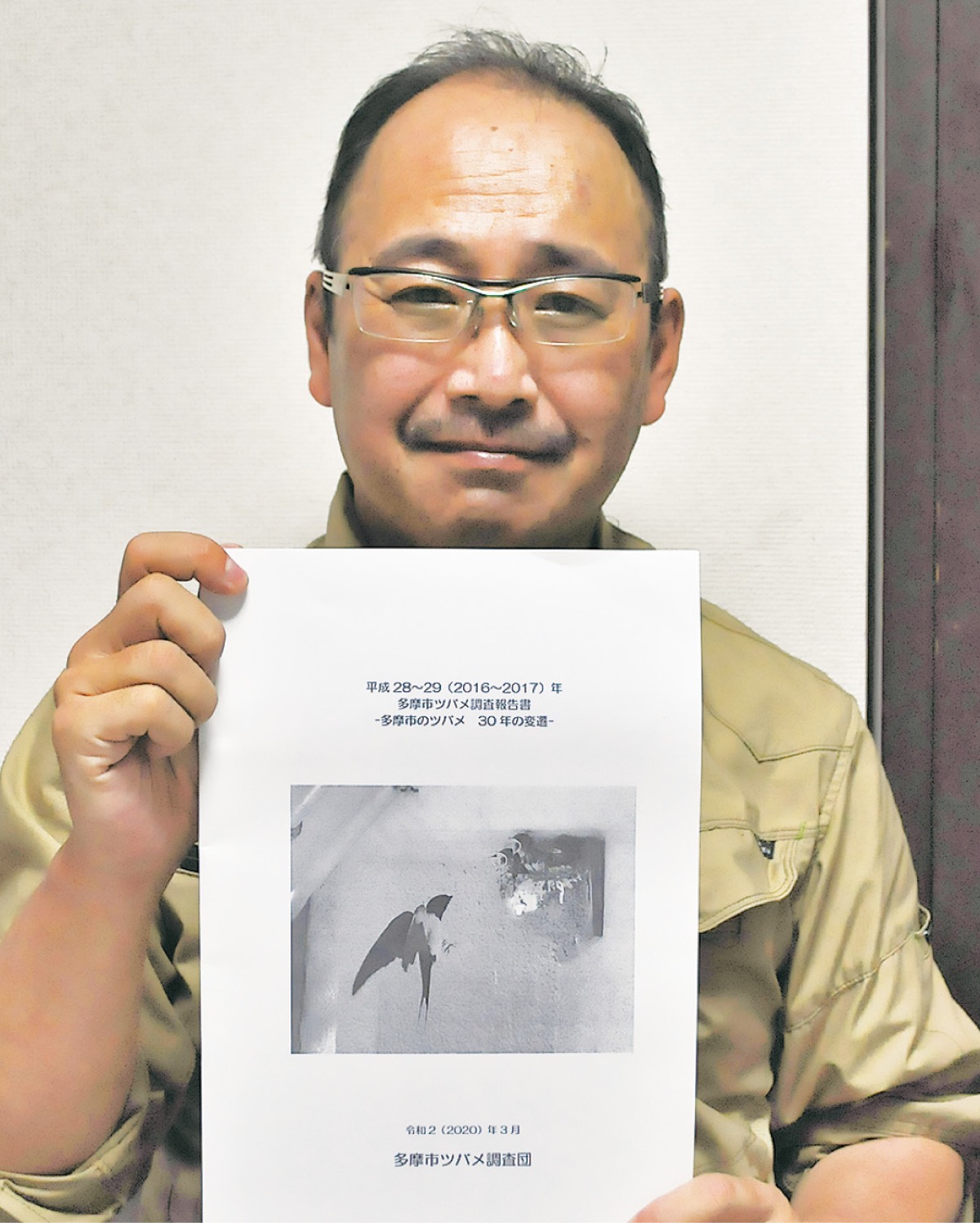 生物多様性の保全に取り組むための基礎情報として、2016年から17年にかけて実施された「多摩市ツバメ調査」の報告書がこのほど、「多摩市ツバメ調査団」(渡辺仁団長)から発行された。同調査では、現在の市内のツバメの営巣状況を確認し、30年前との状況を比較して多摩市の環境の変化や問題などを考察。その結果、ツバメ自体の数は減少していないものの、営巣場所が大きく変化していることが分かったという。渡辺団長は「この調査が多摩市の生物多様性の保全行政に有効に活用され、人とツバメの共生が末永く続くことを願いたい」と話している。